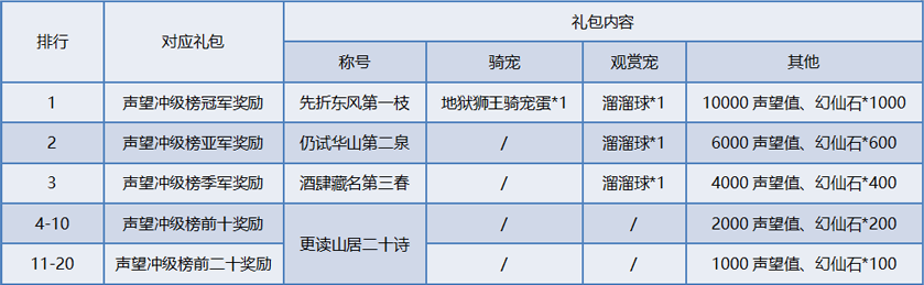 2、若声望值相同,则以角色等级排序(同等级则为当前经验),风云录排名可能会有延迟,最终数据以系统读取为准。